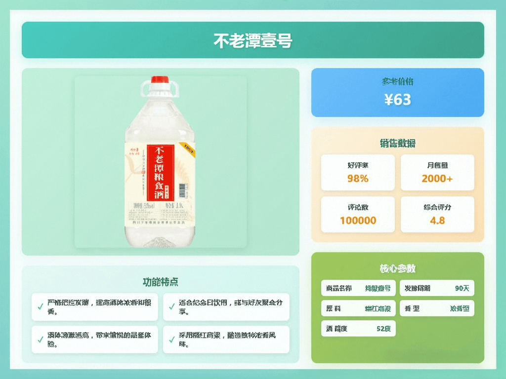 不老潭以传承古法酿造为己任,精选优质泸州糯红高粱等多种粮食,力求呈现纯正浓香,专注每一个酿酒环节,旨在为消费者提供高品质的纯粮佳酿。