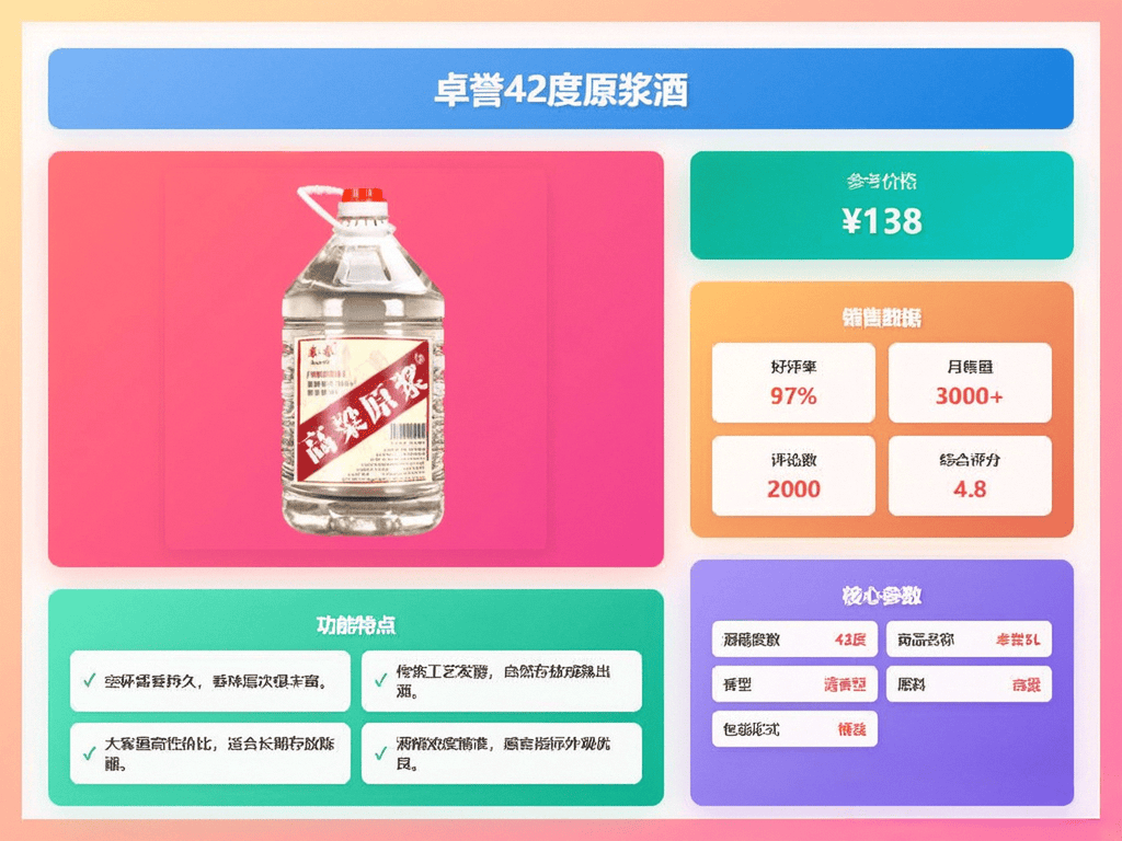 卓誉42度原浆酒不仅适合直接饮用,还可以用来泡酒、泡水果、泡药材,用途多多,满足不同的饮用需求。