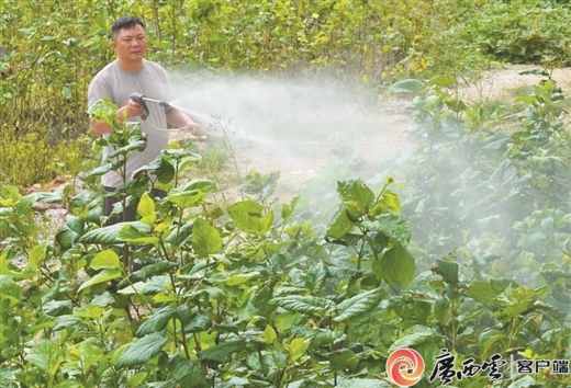 那坡县龙合镇仁合村的村民浇灌桑园。记者 凌聪 通讯员 凌箐璐 黄丽芬 摄